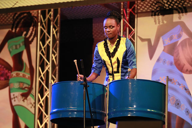 | Contestant #4 Anna John on Steel pan during her talent performance |