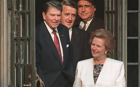 | source Lady Thatcher with Ronald Reagan, Brian Mulroney and the Canadian Prime Minister |