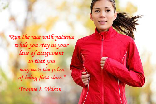 - Run the race with patience while you stay in your lane of assignment so that you may earn the prize