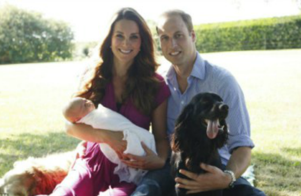 It may not be what the world had anticipated for a first official portrait, but picture shows a smiling Duke and Duchess of Cambridge holding sleeping Prince George in her arms in the sun-dappled back garden in Berkshire. The snapshots were taken by grandpa Michael Middleton who seemingly snapped straight into the light. Family pets Lupo and Tilly even got in on the act. Kensington Palace said the photographs were taken with an inexpensive camera in early August while the Duke and Duchess of Cambridge were staying with Kate’s parents at their Berkshire mansion.