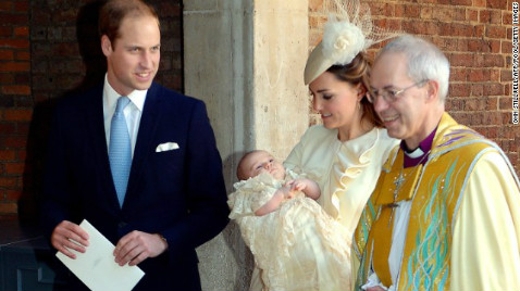 The world was able to see Prince George in public for the first time in three months as he arrived to be christened today. The Archbishop of Canterbury, the Most Reverend Justin Welby, baptized Price George, supported by the Dean of The Chapel Royal, the Rt Rev Richard Chartres, and the Sub-Dean of The Chapel Royal, the Rev Prebendary William Scott.