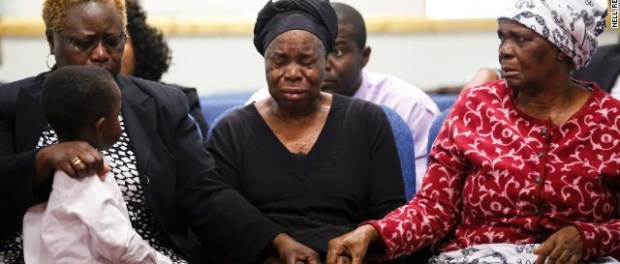 Garteh Korkoryah, center, mother of 42 year old Thomas Eric Duncan, being comforted Saturday, October 18, Salisbury, NC, during a memorial service for her 42 year old son who died October 8, in a Dallas hospital.
