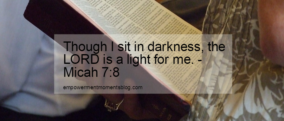 “…because of the tender mercy of our God, by which the rising sun will come to us from heaven to shine on those living in darkness and in the shadow of death, to guide our feet into the path of peace.” ~ Luke 1:76-79 NIV “Don’t be glad on my account, my enemy! When I fall I’ll get up. Though I sit in darkness, the LORD is a light for me.” ~ Micah 7:8 ISV